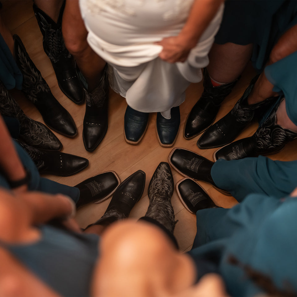 Del pasillo a la fiesta posterior: botas para todo el equipo de la boda.