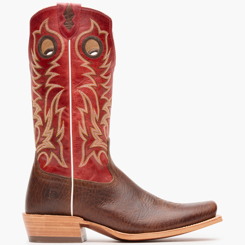 Experimenta la artesanía superior con la colección Durango® Arena Elite™ para hombre en color marrón azteca/rojo jaspeado. Este modelo presenta cuero de plena flor, forro de piel de vacuno, plantilla Durango® Sole Comfort Footbed™ y una plantilla acolchada flexible con estabilizador rígido en el talón. La caña es de nailon con una zona enrollada, mientras que la suela es de cuero genuino clavado a mano.